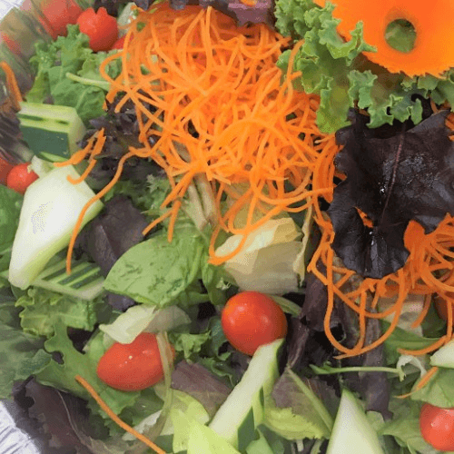 Spring Mix, Cucumber, Cherry Tomatoes, and Carrot with Peanut Sauce.