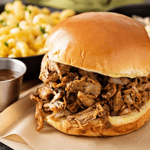 Pollo mechado, queso de mano, repollo y salsas