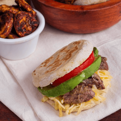 queso de mano, repollo, salsas y extra de queso