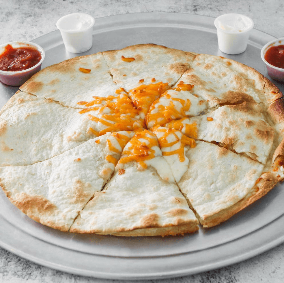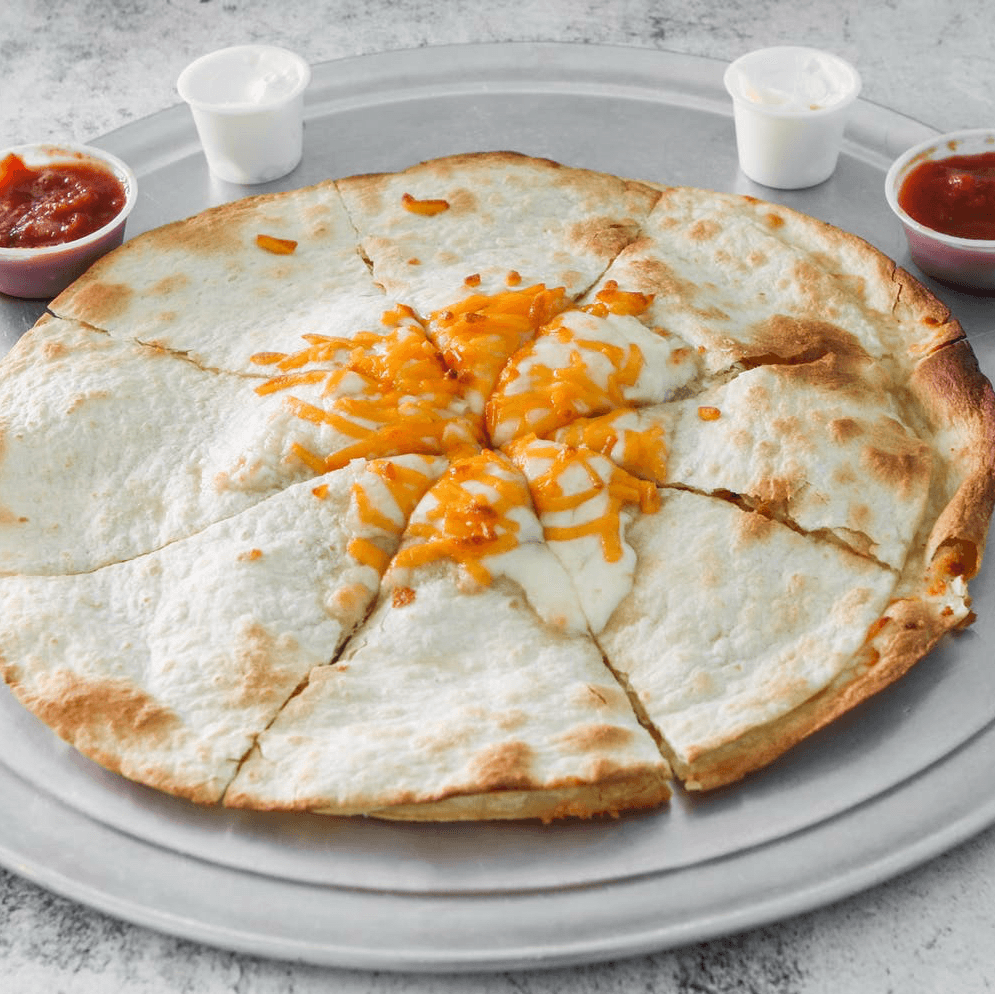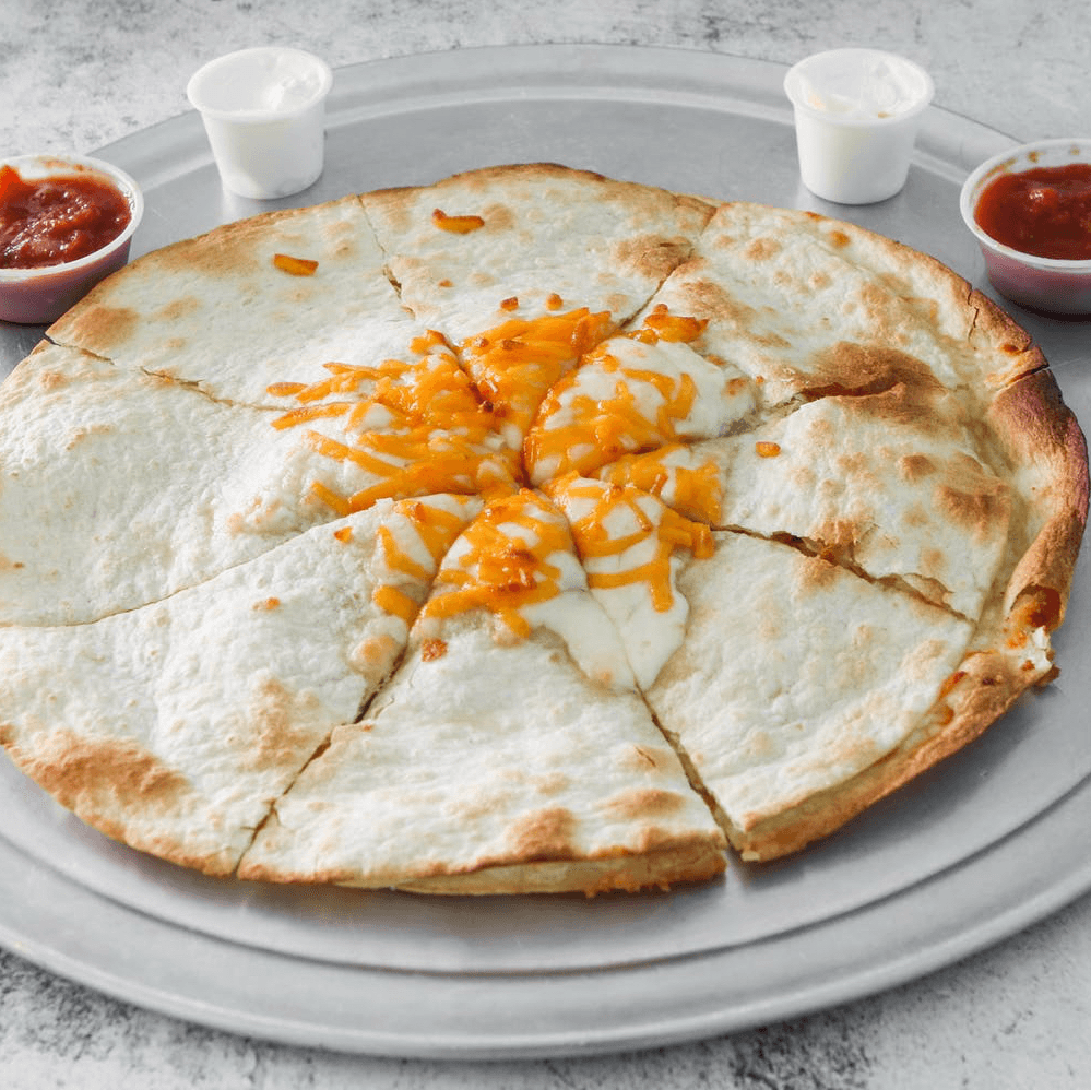 Mozzarella cheese, cheddar cheese, side of sour cream and salsa