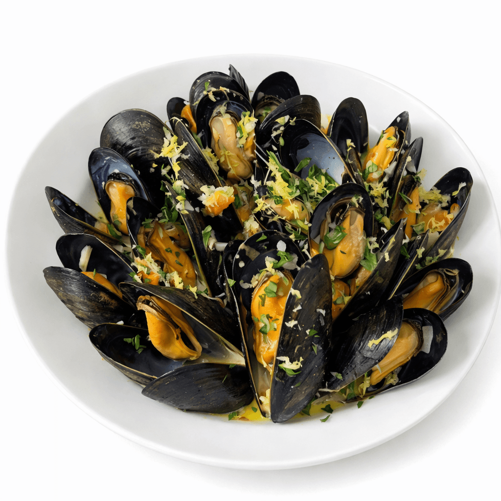 Combined in a white or red sauce served with fresh toasted bread