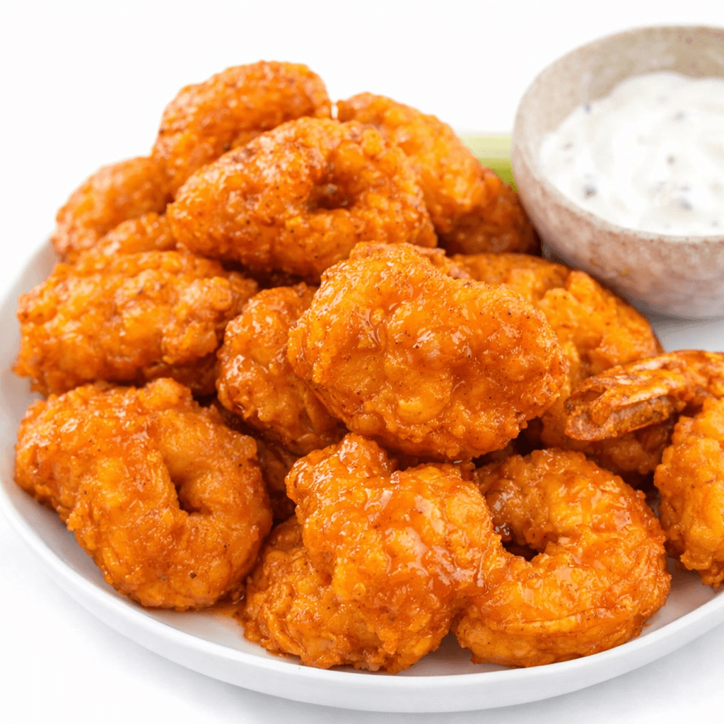 Lightly hand-breaded shrimp tossed in buffalo sauce served with a side of ranch or blue cheese dressing